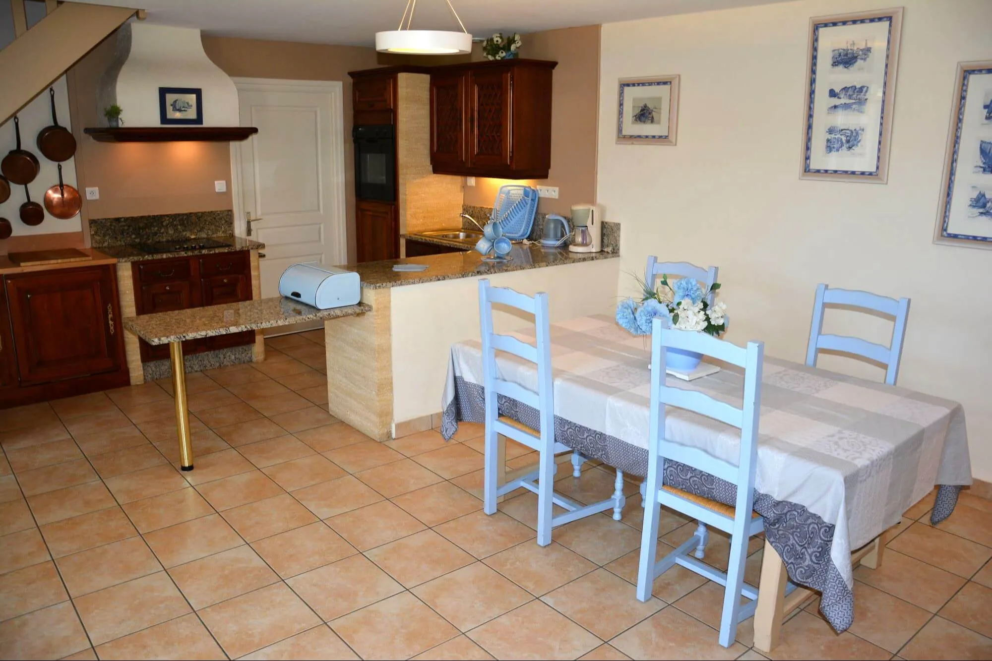 La cuisine est de taille moyenne de type bretonne ouverte sur séjour, sa table à manger peut accueillir jusqu'à 6 personnes. La cuisine est équipée de tout le nécessaire pour préparer de bons petits plats durant votre séjour :