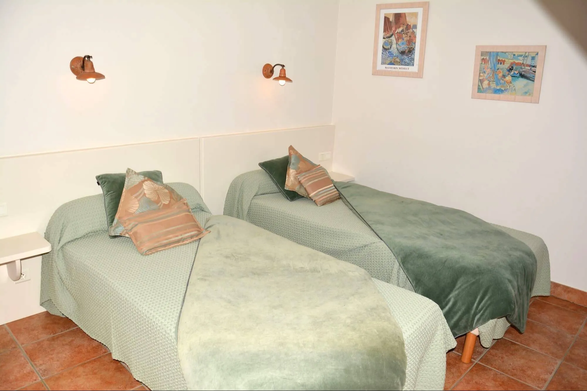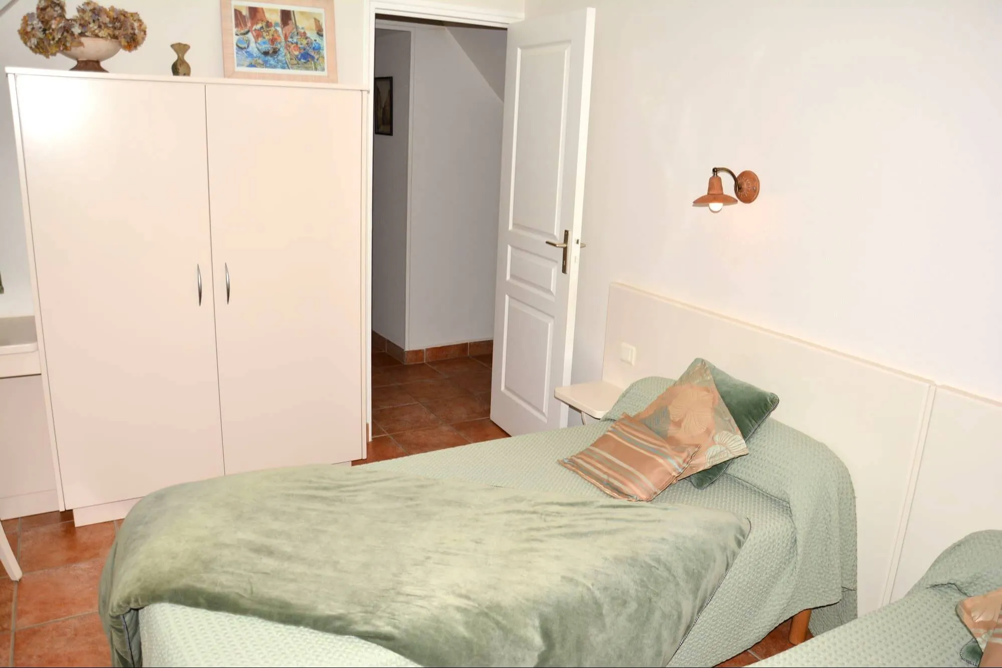 ✓ la chambre verte propose 2 lits simples d'une place de 90 x 200 cm, d'un placard aménagé, de rangements et d'un petit bureau ;
