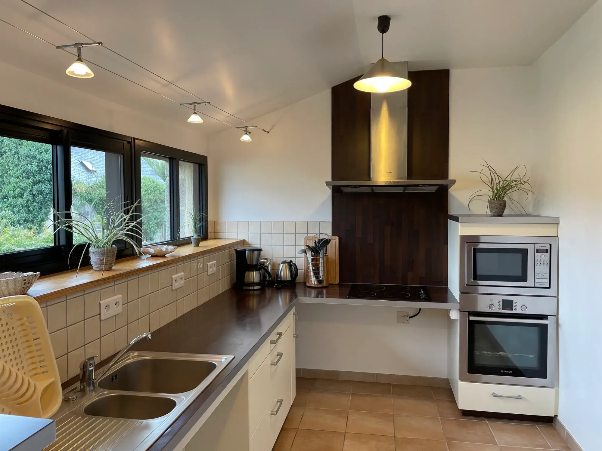 La cuisine moderne est de grande taille et indépendante. Elle a été pensée pour accueillir des personnes à mobilité réduite avec accès aux différents équipements. La cuisine comprend :