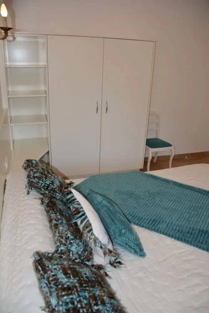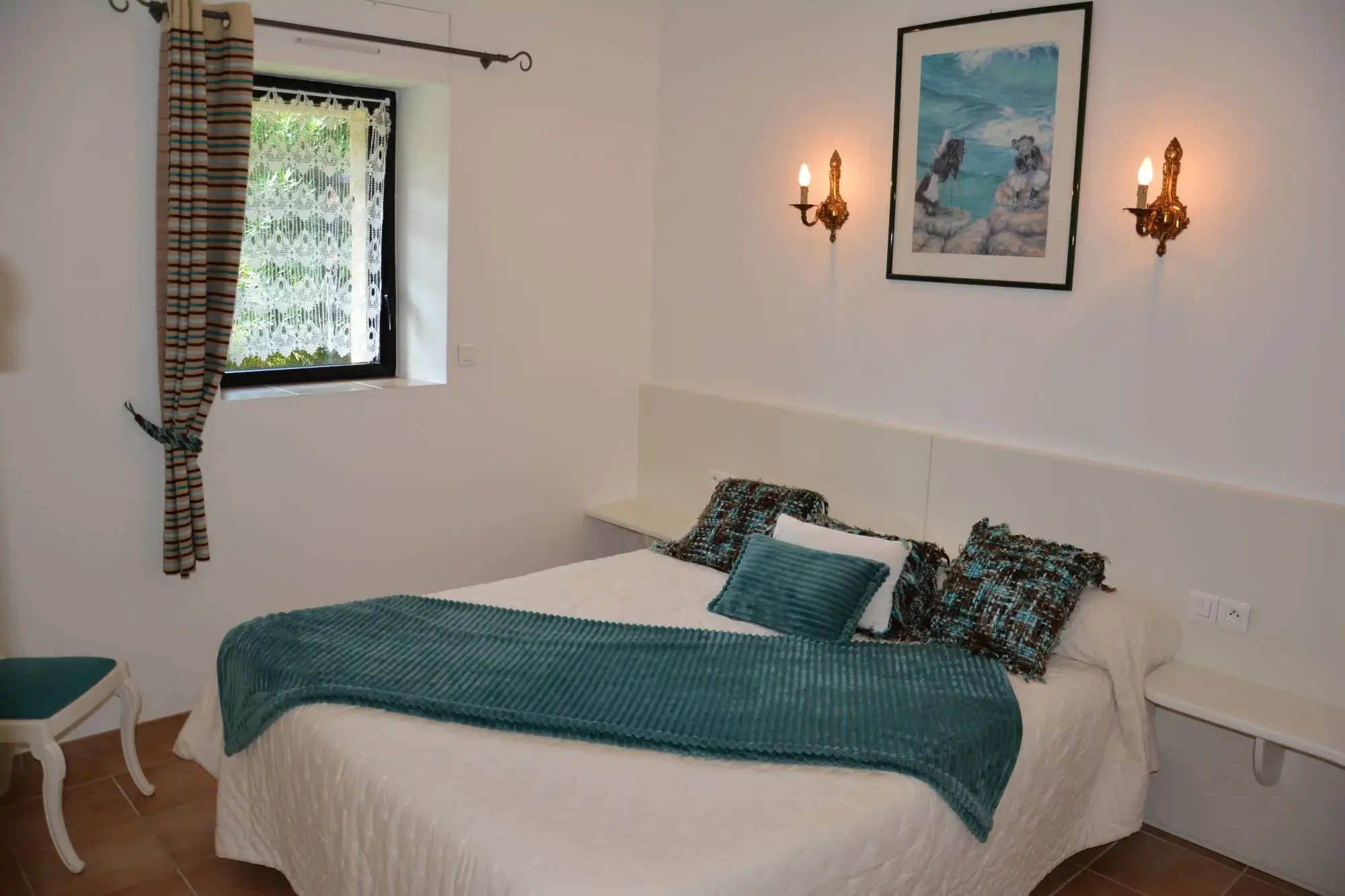 ✓ 1 chambre du rez-de-chaussée avec vue sur le jardin est équipée d'un lit double de 160 x 200 cm, puis d'un placard aménagé avec de nombreux rangements ;
