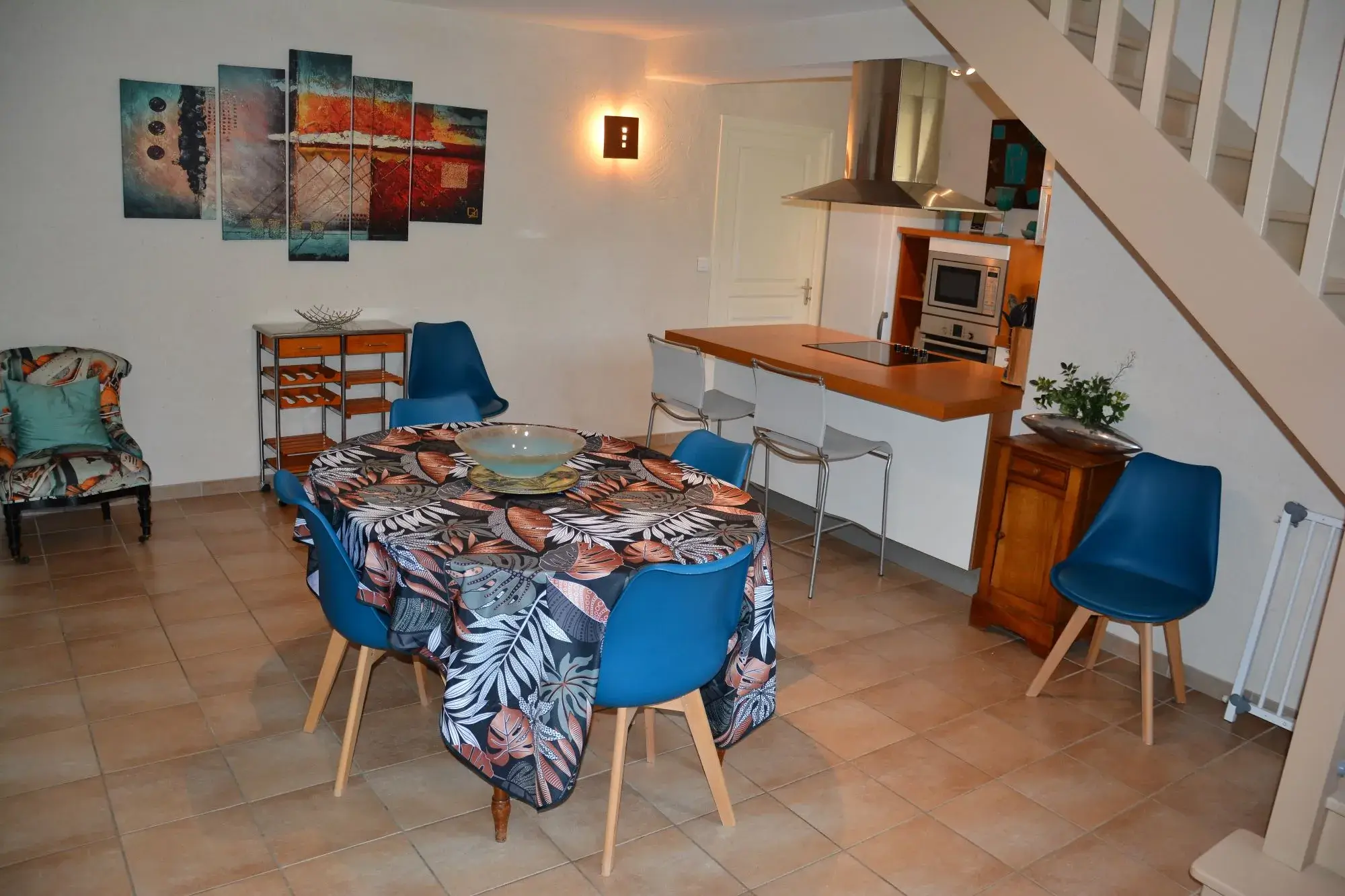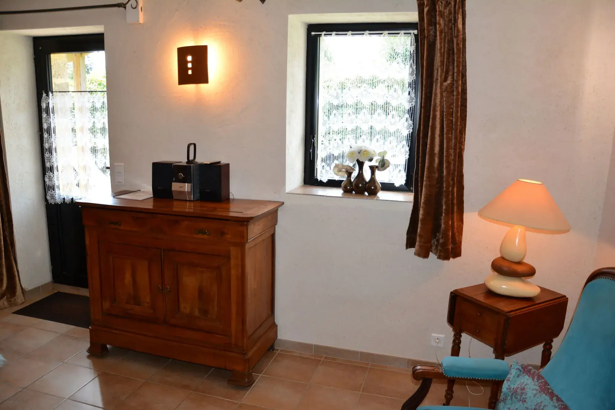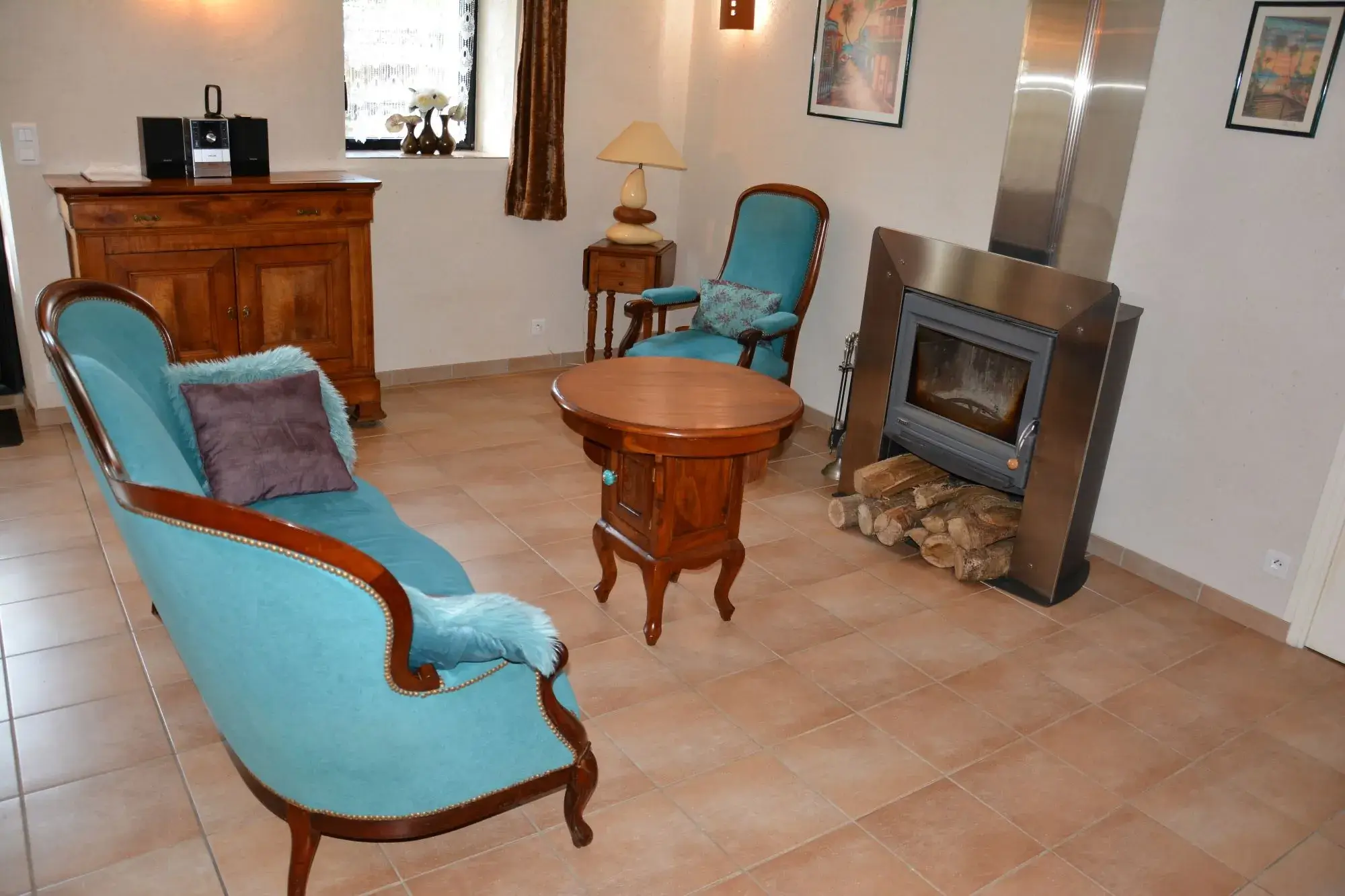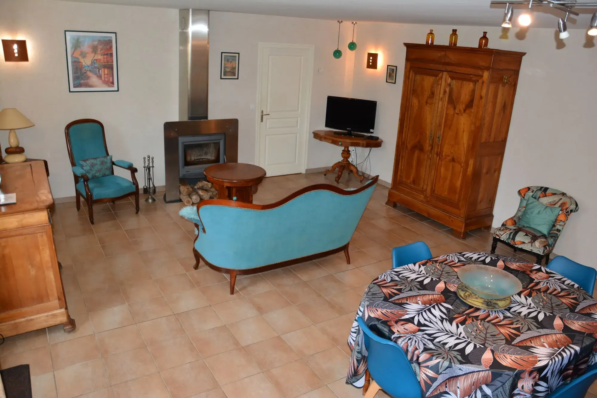 Le gîte turquoise bénéficie d'un salon de grande taille avec un accès direct sur le jardin. Il comprend :