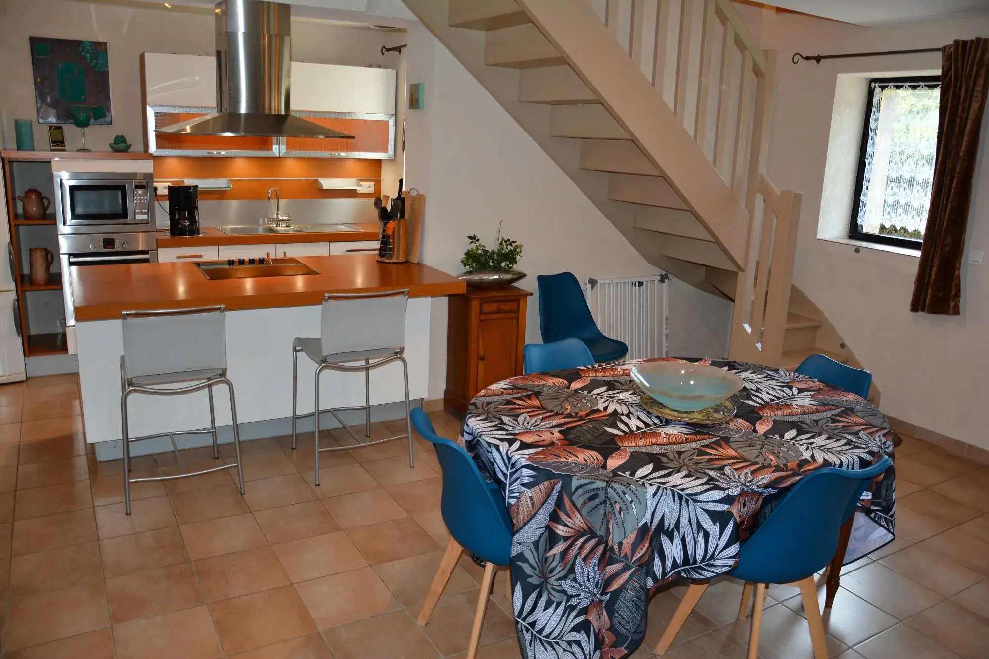 La cuisine est de taille moyenne, elle bénéficie d'un grand plan de travail et d'un ensemble d'appareils électroménagers. Elle est équipée de tout le nécessaire pour préparer de succulents mets durant votre séjour. Petite attention particulière, une station météorologique est disposée sur les étagères de la cuisine, elle vous donnera le temps à venir durant vos vacances. La cuisine comprend :